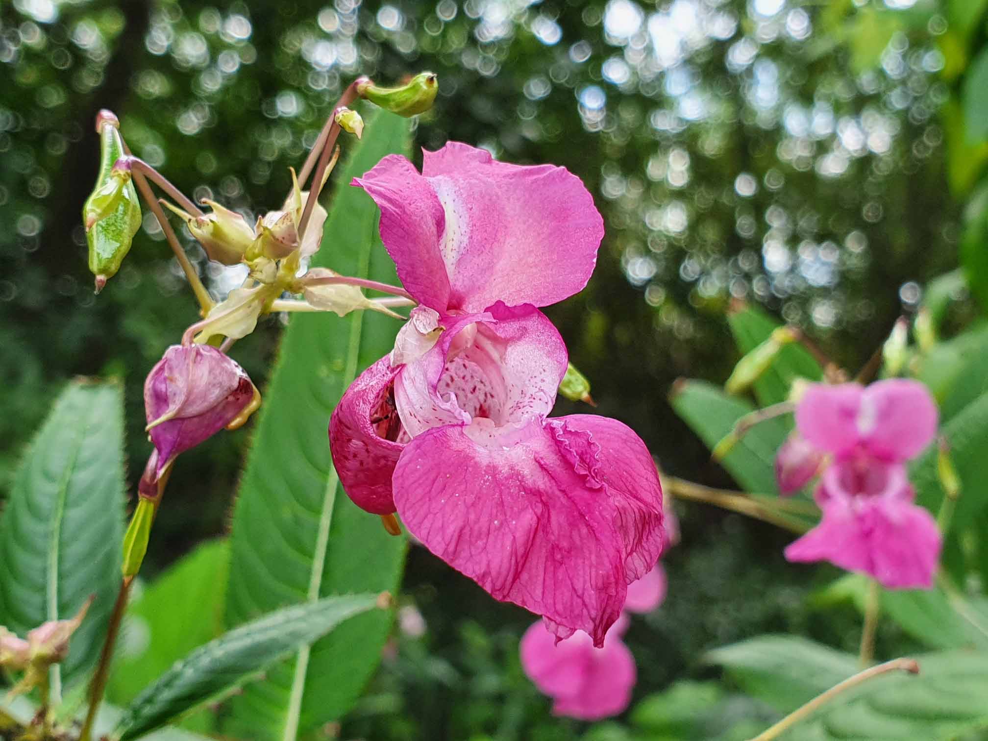Nach kurzer Zeit waren wir schon wieder im Grünen. Der Stienitzsee (auch Großer Stienitzsee genannt) ist umgeben von einem Sumpf, einem schmalen Holzbohlenpfad mit kleinen Brücken zu offenen Stellen zum See und immer wieder Pflanzen mit wunderschönen pinken Blüten.