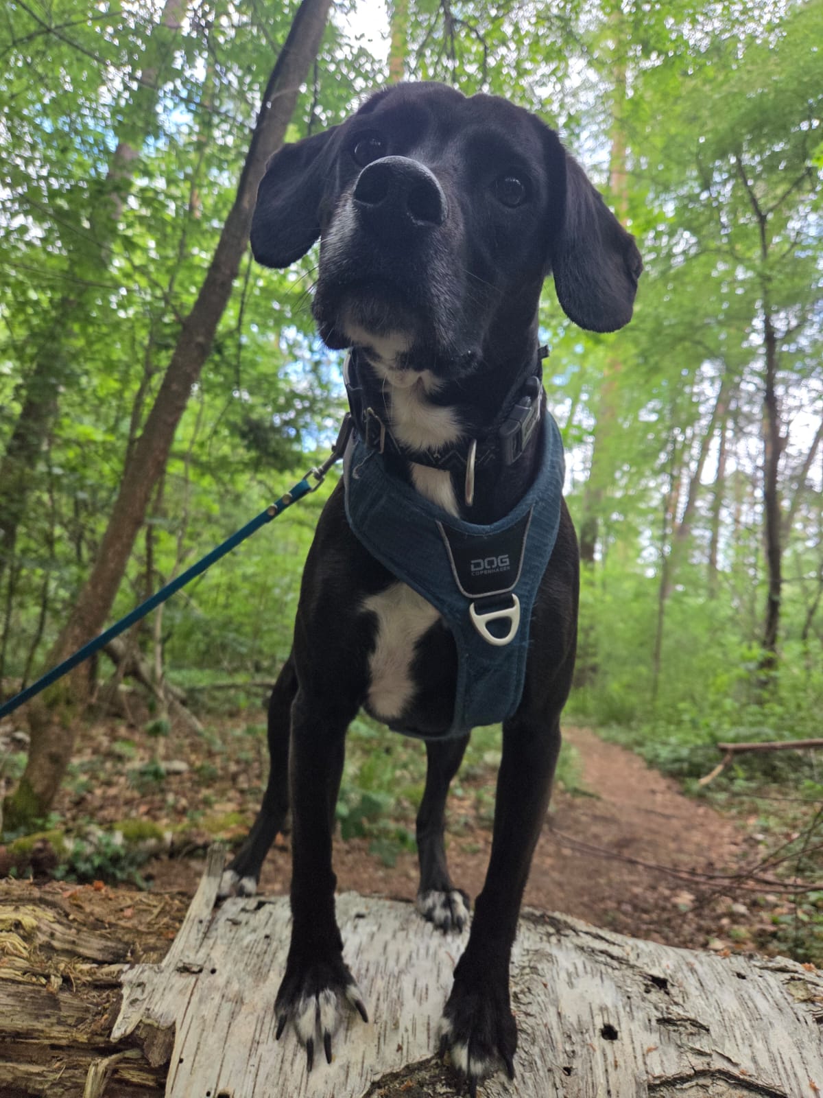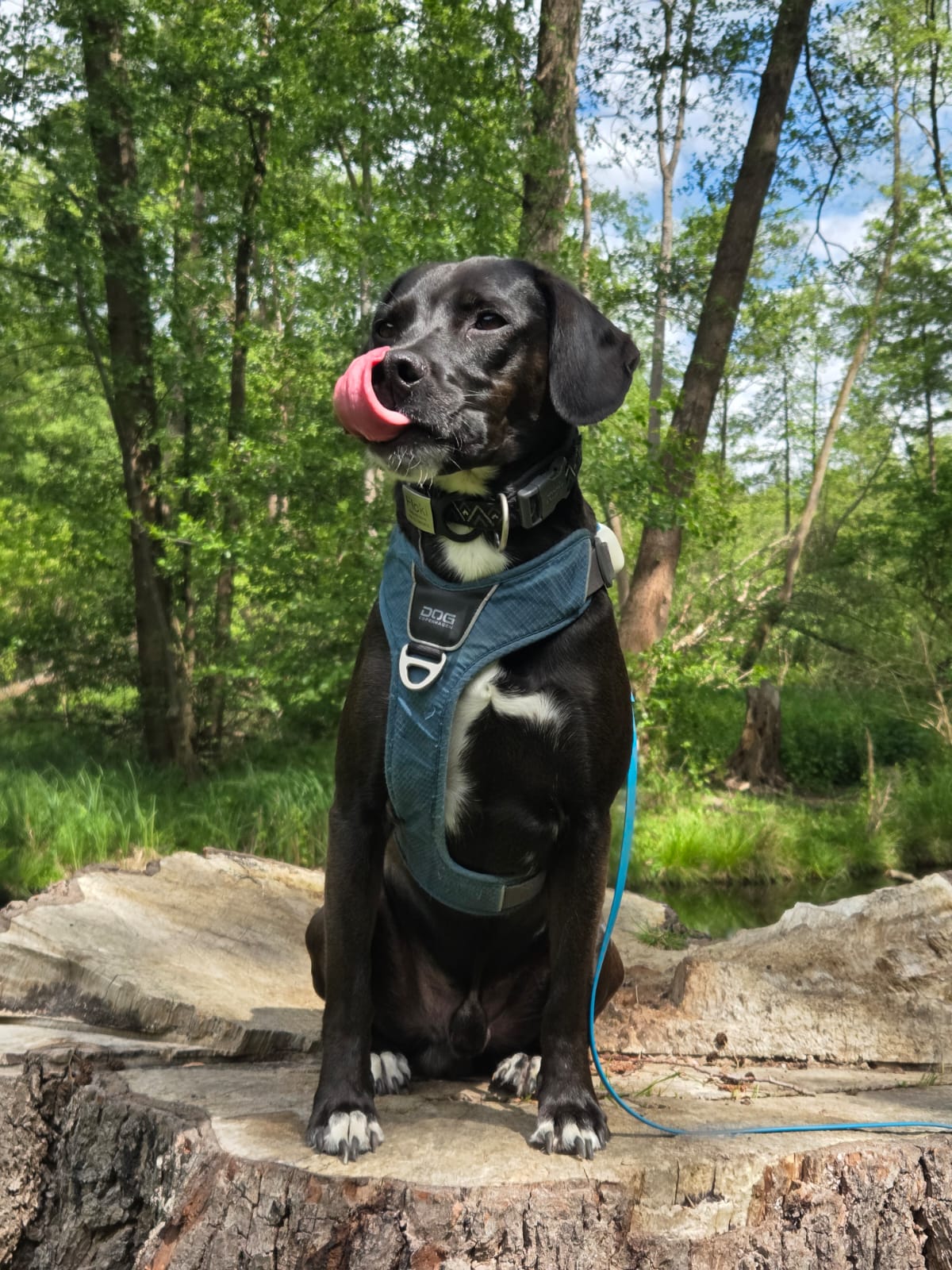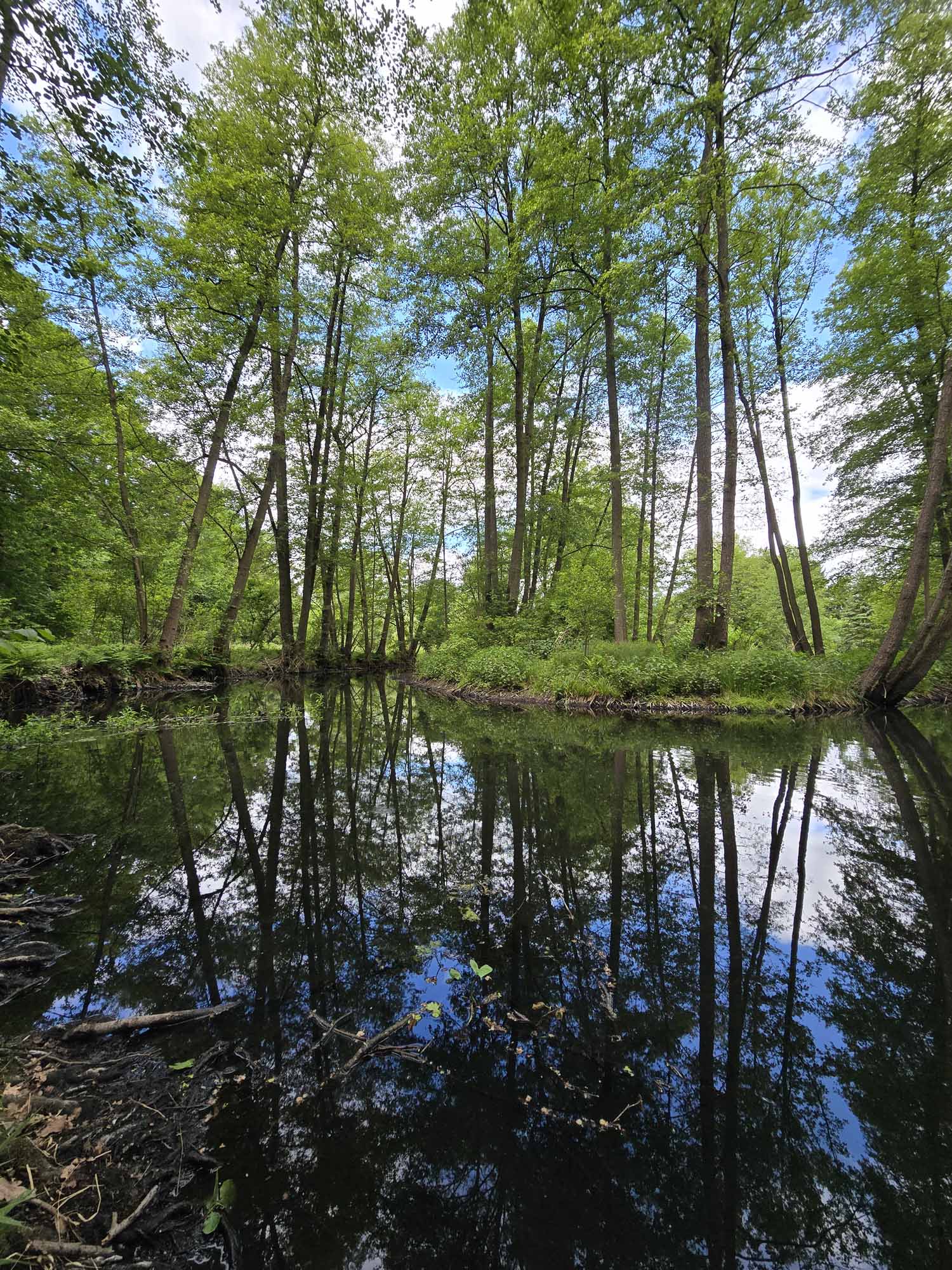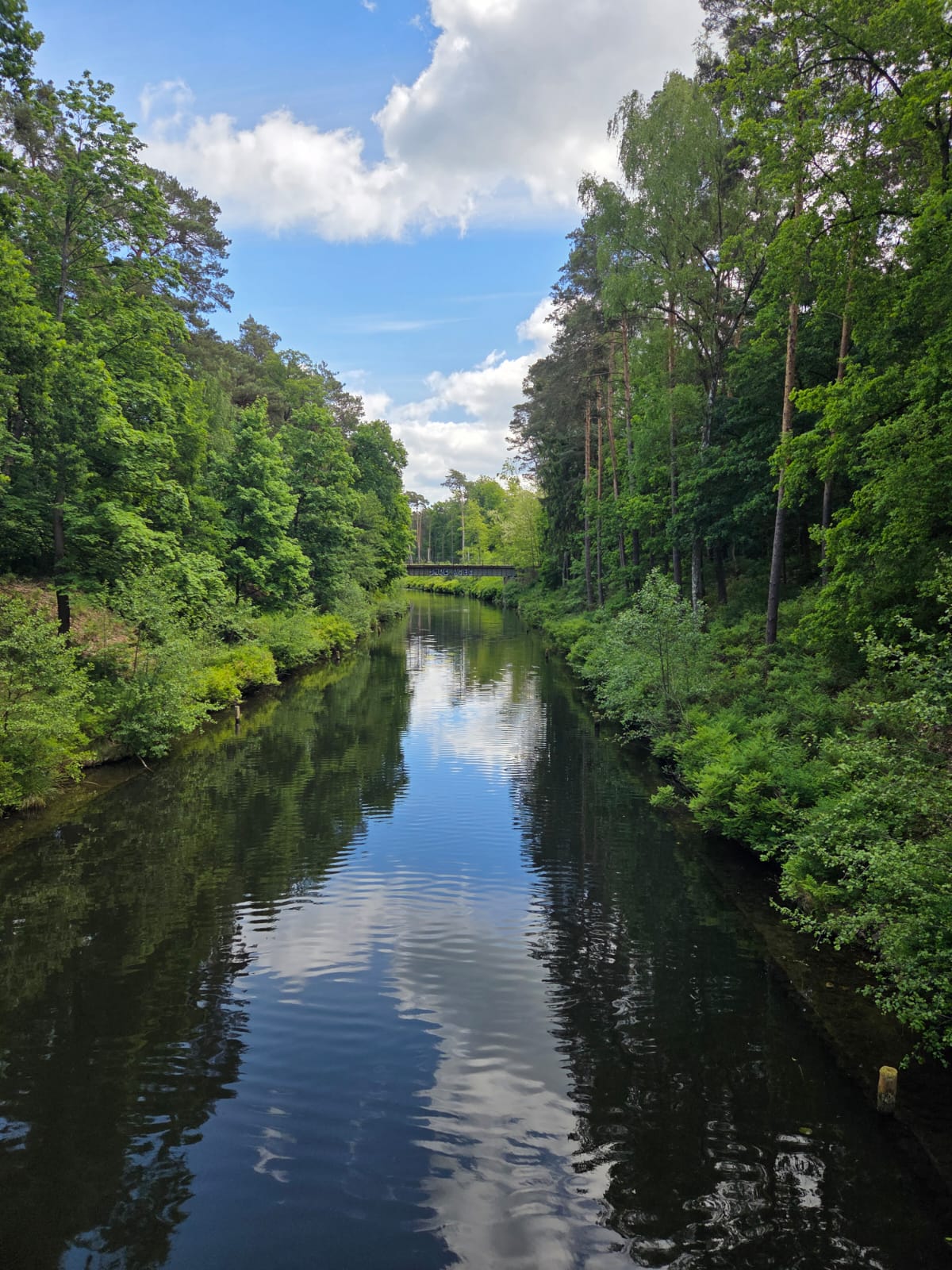 An der Löcknitz entlang folgen wir dem schmalen Pfad und begegnen regelmäßig ein paar anderen Wanderern, wodurch Hund Floki eher in unserer Nähe bleiben muss und nicht den ganzen Radius seiner Schleppleine ausnutzen kann. Aber es gibt immer mal wieder Möglichkeiten, wo wir mit ihm spielen oder etwas üben können.