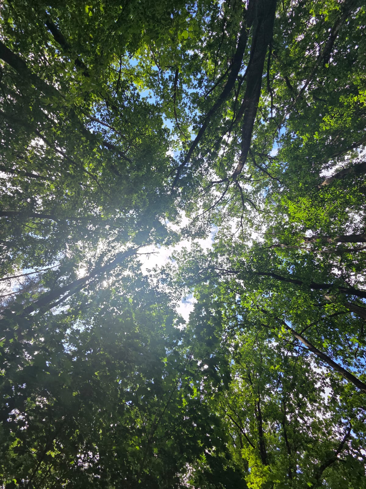 Vom Bahnhof laufen wir ein kleines Stück an der Straße entlang, ehe wir in den Wald abtauchen. Sofort sind wir mitten im Wald und können für den Moment die Hektik der Großstadt hinter uns lassen.