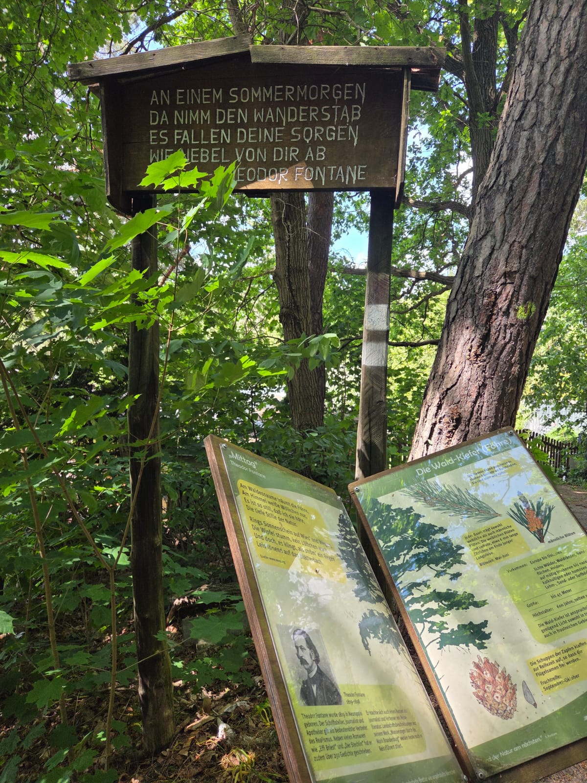 Der Weg führt über den Waldpoesie-Pfad-Erkner vorbei an Gärten und einem Zeltplatz und wir müssen Floki auch hier nah bei uns behalten, um den anderen Spaziergänger*innen und Sportler*innen nicht in die Quere zu kommen.